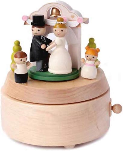 I personaggi sui carillon si muovono per mezzo di magneti invisibili, accompagnati da un sottofondo musicale che ricorda antiche melodie.